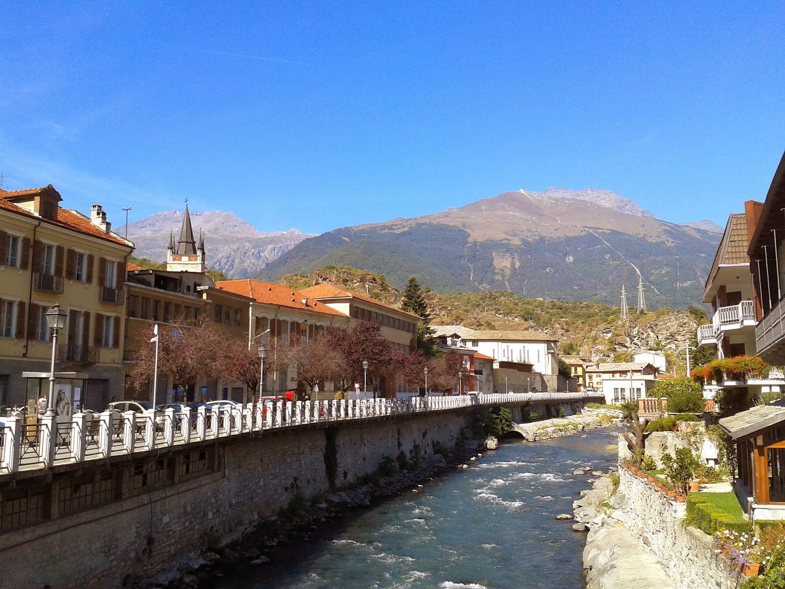 Giunti nei pressi di Susa, lasciamo l'autostrada e ci immettiamo sulla SS24. Il paesino, al centro delle cronache per essere il capoluogo dell'area in cui in questi anni molti si oppongono alla costruzione del traforo ferroviario della liena Torino-Lione, è davvero molto carino. Passiamo un piccolo ponticello sulla Dora Riparia..