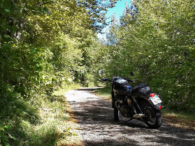 Mi muovo nemmeno troppo presto, verso le 9.30.. SS35 dei Giovi, fino a Pavia e Salice Terme. Proseguo per Varzi e, a differenza della settimana scorsa, anzichè proseguire lungo la SP461 del Passo Penice, proseguo a destra lungo la SP186 della Val Staffora. Tracciato assolutamente gradevole, scorrevole, col fondo stradale in condizioni più che buone. Traffico quasi nullo: le previsioni meteo erano sfavorevoli e dunque in pochi hano scelto di andarsene in giro. Meglio così. Arrivo su fino a Brallo di Pregola e "scavallo" proseguendo lungo la SP186.. la discesa è piacevole, anche se ogni tanto un po' di sabbietta e il gioco di ombre non permettono di rilassarsi come sarebbe bello. Tuttavia la discesa è piacevolissima. Uno scorcio, a valle di Brallo..