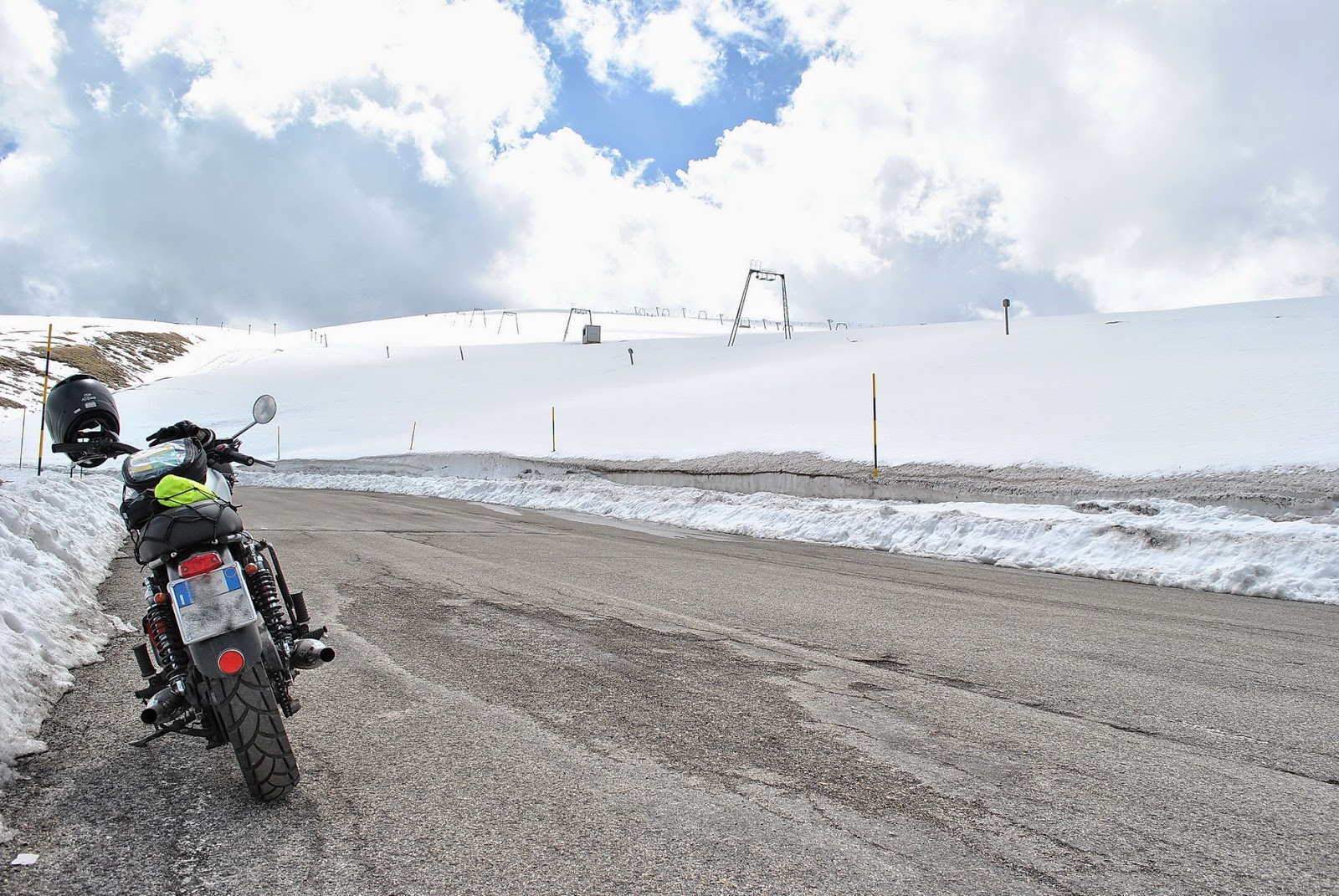 Andando più avanti, si arriva nei pressi degli impianti di risalita: sono ancora funzionanti, nonostante si sia alla fine di aprile! Gruppi di sciatori con le tavole e gli sci mi guardano incuriositi.