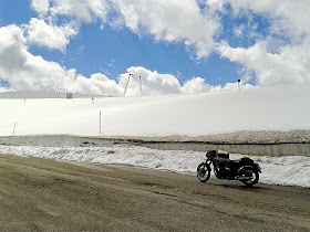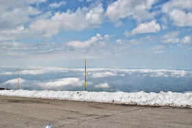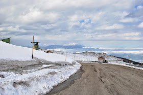Un paio di km prima della sommità la parte dissestata finisce e si può tornare a godersi ancora qualche curva, fino all'ultimo tornante a sinistra, che apre la vista della spianata della Majelletta, a circa 1600 m. sul livello del mare. Ma quanta neve c'è? Ecco la vista dell'Albergo Mamma Rosa..