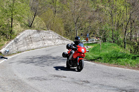 Appuntamento alle 10.30 all'uscita di Tortona, sulla A7 Milano-Genova. Come al solito, arriviamo tutti e tre con largo anticipo: siamo impazienti di partire. Piccola sosta rifornimento a Tortona e si prende la SP120 in direzione di Sarezzano. La strada attraversa belle colline inondate dal sole del mattino: anche le temperature, che in questi giorni sono leggermente scese, si fanno via via più gradevoli. Imbocchiamo la SP140 della Val Bòrbera in zona Torreratti: il tracciato ha dei bei saliscendi e curve aperte, fino a giungere dopo Garbagna. Poco più avanti inizia una specie di carosello con la strada che corre a mezza costa lungo la vallata del torrente Bòrbera. Bellissime curve aperte, in discesa, dove non circola una macchina. Scendiamo di sella....