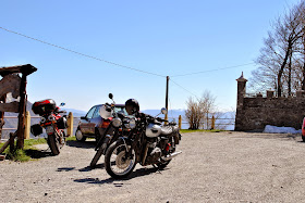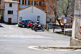 Per la cronaca, gnocchi con formaggio e castagne, tagliere di affettati e formaggi... porchetta con contorno di patate e verdure.. una mezza di rosso, un paio di birre (..leggere...), dolce, grappetta finale! Le moto aspettano al sole che noi si smaltisca un po'..