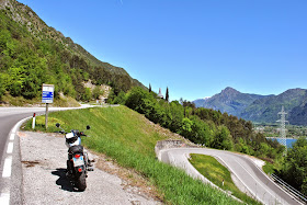 Poi seguo le indicazioni per Iseo: bellissima la strada che arriva fino al lago, che si scorge da uno dei tornanti. A salire dev'essere ancora più bella e infatti molti motociclisti l'avevano scelta per fare pieghe nel pomeriggio. Comunque diverse pattuglie sorvegliavano con discrezione che non si eccedesse.