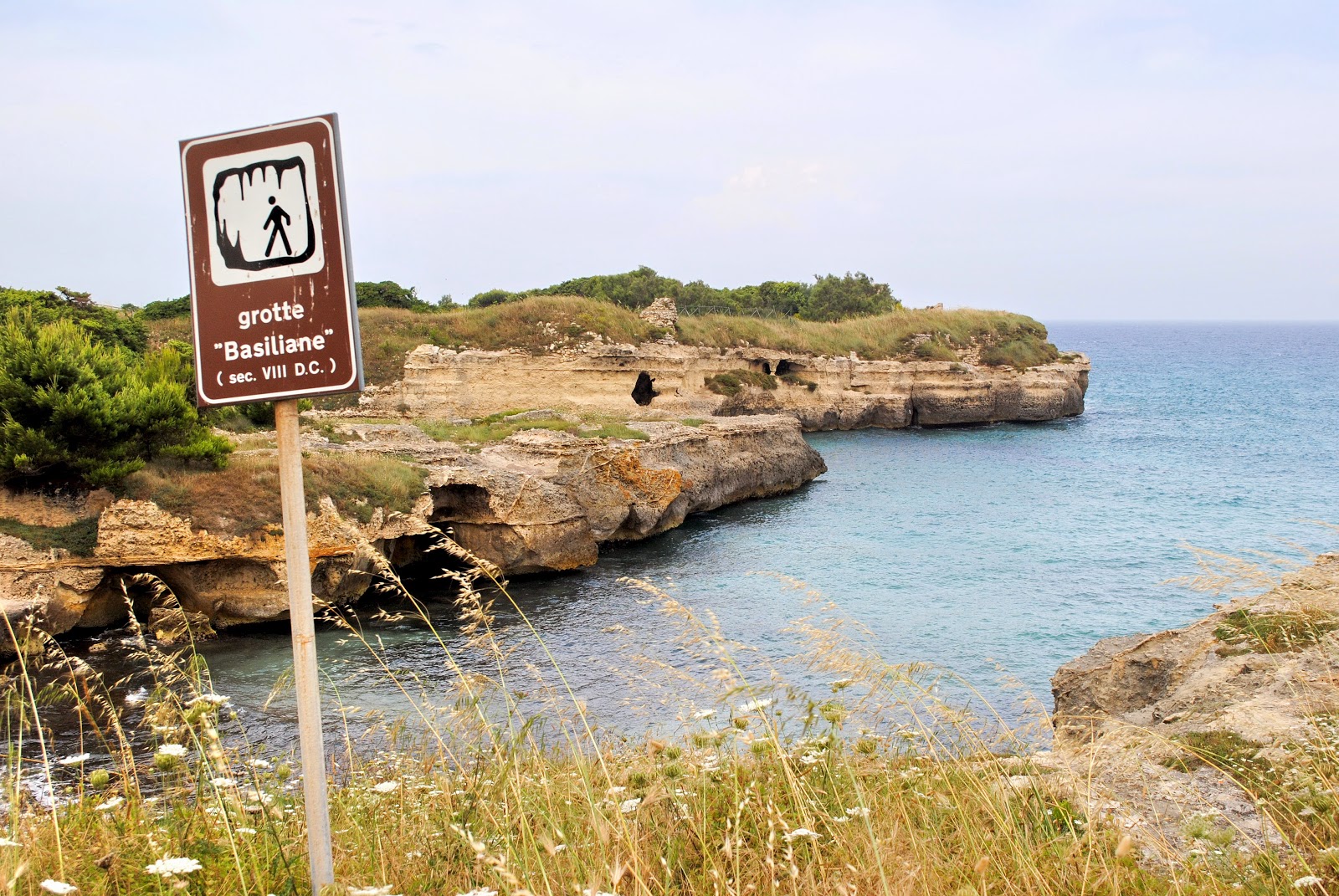 Stamattina il sole è pieno e ci accompagna anche un vento caldo abbastanza teso. Arriviamo nella zona di Melendugno, presso le grotte Basiliane. Finalmente in maniche corte!