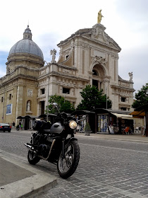Mettiamo gli antipioggia, prepariamo le moto sotto la pioggerellina e ci dirigiamo verso la costa adriatica, percorrendo la SS4 Salaria. Passiamo alcune strade montane immersi addirittura in una fitta nebbia. Poi ridiscendiamo verso il mare lungo la svelta strada a scorrimento veloce. A Martinsicuro togliamo gli antipioggia.