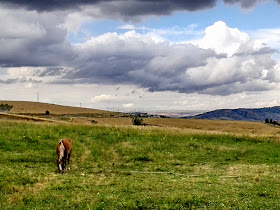 Proseguendo nella salita, la SS277 descrive curve da montagna, molto belle. Sull'altipiano, mentre si va verso Accettura, un cavallo pascola placidamente.