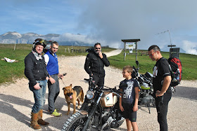 Quattro chiacchiere con persone rimaste colpite dalle nostre motorette, con i bimbi come sempre entusiasti! Poi adiamo ancora più su, per goderci un altro po' di sterrato.