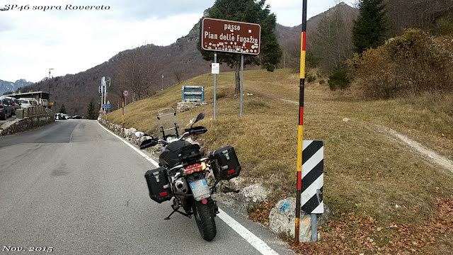 Domenica mattina partenza con una leggera nebbia. Ma già quando prendo il breve tratto di A31 verso Thiene/Schio si è diradata. Sono diretto a Rovereto e voglio arrivarci percorrendo la SS46 del Pasubio. E' una strada normale fino a Valli del Pasubio. Da qui comincia un carosello di curve e tornanti.