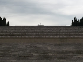 Una volta sul posto, arrivando da Monfalcone, sulla destra si trova questo immenso memoriale che scende dalla collina.