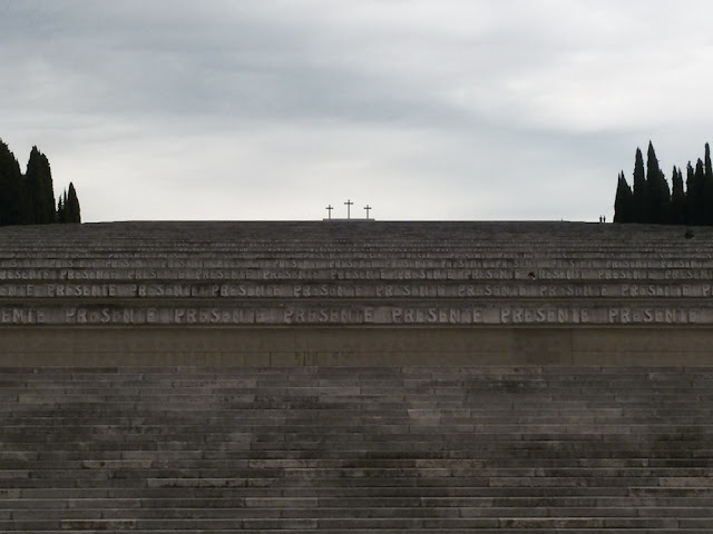 Dal 1938, quando venne costruito, custodisce i resti di 100.000 soldati italiani morti nella Grande Guerra, quella del 1915-1918. I gradoni si susseguono, costellati dai nomi dei caduti. Ben 60.000 sono i militi la cui identità rimane ignota. Qui sotto la tomba del Duca d'Aosta, comandante della III° Armata.