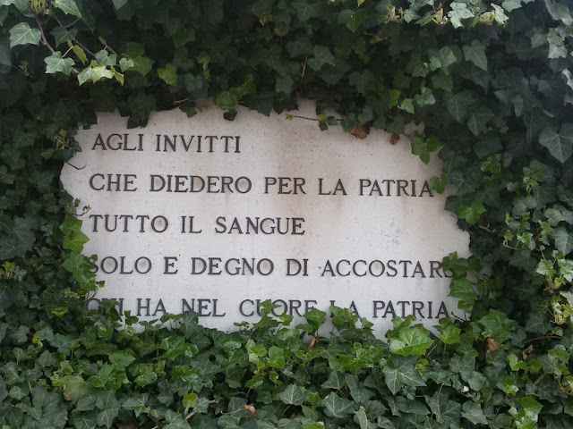 L'iscrizione sulla lapide rinnova l'invito ad aver cara la Patria, in ricordo e per rispetto di quanto sono caduti per Lei.