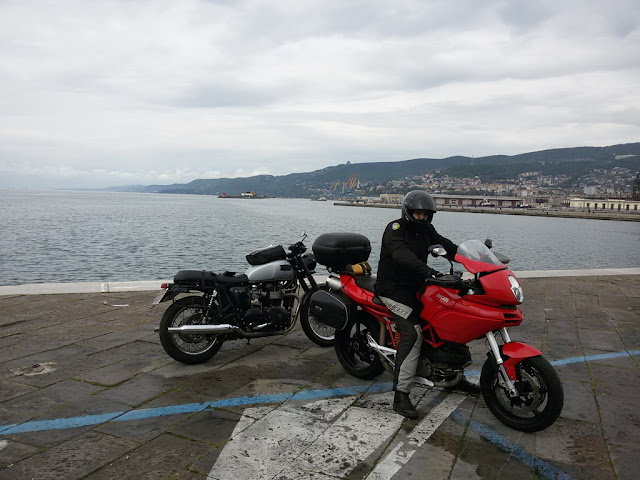 OVVIAMENTE, fatti non più di 500 metri, riprende a piovere. I pochi km che ci separano da Trieste li facciamo quindi sotto l'acqua.