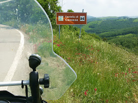 Finalmente mi imbatto nell'indicazione nei pressi di Calerno. Lascio dunque la via Emilia e, dopo un passaggio a S. Polo d'Enza, mi basta seguire le indicazioni per "Castello di Canossa", facilmente individuabili grazie al colore marrone del cartello.