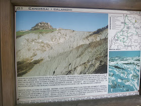 Dal piazzale ai piedi della vecchia rocca, si gode della vista sulla vallata e sui calanchi che caratterizzano la zona.