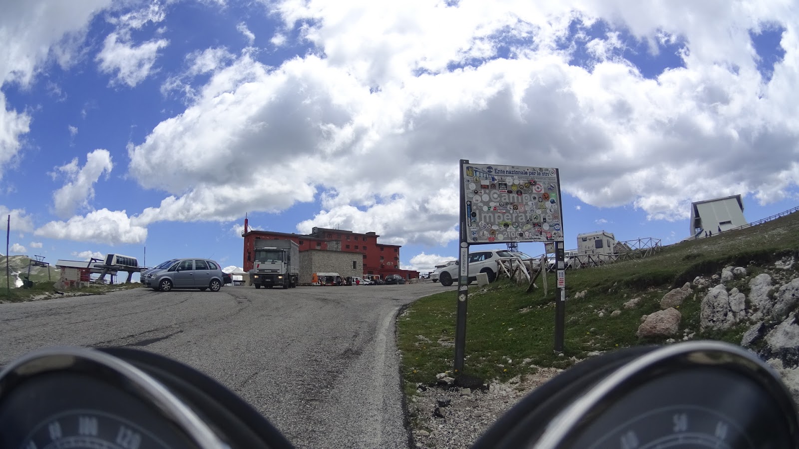 Con diversi tornanti regolari (in alcuni all'ombra c'è ancora la neve..) e ben tenuti si giunge fino alla sommità della salita: l'Osservatorio Astronomico sullo sfondo e il cartello che indica 2.100 metri sul livello del mare.