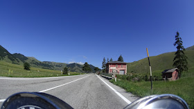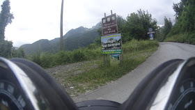 E' una delle strade più belle fatte in questo giro: in salita, con tante curve in sequenza, ritmate, regolari, filanti o tonde e ben disegnate, con un asfalto che, a parte qualche parte un po' polverosa, non desta preoccupazioni. Io, Cesco e Nolmar ce la godiamo alla grande!