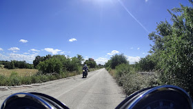Da Gravina ci siamo subito diretti verso l'Altopiano dell'Alta Murgia: l'altopiano si staglia al di sopra della pianura. Subito il panorama diventa estremamente caratteristico. La fanno da padroni i colori caldi, gialli, ocra. Anche le strade hanno il colore della terra rossa. E poi i campi di zolle scure; i muretti a secco; gli ulivi (quest'anno gravemente minacciati dalla Xylella, che sta mettendo a rischio l'intera economia agricola olearia di questa bellissima terra). Prime curve per salire sul pianoro e poi diversi km sulla strada che collega Gravina a Corato, la SP238. In lontananza si incomincia a vedere il mare Adriatico. Traffico molto limitato e lunghi rettilinei con la strada che, di tanto in tanto, segue la discesa di qualche avvallamento per poi riportarsi in piano. Anche questo contribuisce a rendere la guida tutt'altro che noiosa, contrariamente a quanto si potrebbe essere portati a pensare.