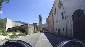 Giungiamo al piccolo paese di Castel del Monte, con la sua torre campanaria ancora in via di restauro dopo il terremoto del 2009. Da qui, voltando a sinistra e poi a destra (nessun problema: le indicazioni sono ben presenti) si sale con altri bei tornanti e un gran fondo stradale verso il Valico di Capo la Serra. Già prima di arrivarci la vegetazione è rarefatta e i pianori al lato della strada sono punteggiati di massi dal colore grigio. Cominciano inoltre a stagliarsi contro il cielo azzurro e terso alcune cime. Dal valico inizia un tratto di discesa abbastanza guidato, dove è bene non lasciarsi prendere la mano: alcune curve sono un po' improvvise e con un raggio irregolare, magari seguite subito da un'altra molto ristretta. Dopo questo breve tratto, si apre finalmente in modo spettacolare la vista sull'altopiano di Fonte Vetica. Impossibile non rimanere estasiati.