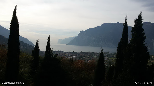 Scendo a Rovereto e seguo le indicazioni per Riva del Garda. Dopo aver passato l'Adige e scavalcato l'A22 del Brennero, la strada piega verso l'interno. E' un tratto di una quindicina di km, forse, ma molto piacevole. Si arriva a Nago, dove pernottammo in occasione del 4° Rebel del forum BF (bicilindrici frontemarcia) del 2014 e si scende verso Torbole. La vista sulla punta settentrionale del lago è incantevole.