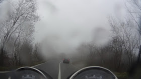 Ad Acqui Terme, prima di imboccare la via per Sassello, faccio benzina e decido di fare una via differente dall'altra volta: come mi ha consigliato Triplepeo, un centinaio di metri dopo essere ripartito dal benzinaio prendo a sinistra la SP210 seguendo le indicazioni per Ponzone. La strada è bagnata e c'è foschia.