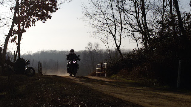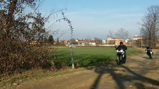 Dalle parti di Fontaneto d'Agogna Ste KTM ha le fregole da pista sterrata: ne troviamo una battuta che porta nei campi... e si va!