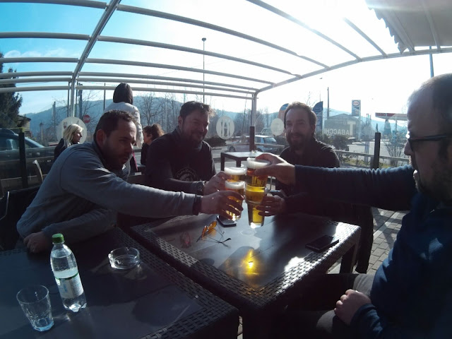 ....ci godiamo un focaccione ripieno enorme e il sole tiepido... davvero un piacere.. ci saranno 15 gradi qui sopra Meina..