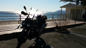 .....la discesa è lunga e ripida, come l'orografia del territorio ligure impone. Si arriva in fondo proprio a Finale Ligure e di qua ci si immette sulla SS1 Aurelia. Volto a destra verso Ovest, direzione Imperia.. si costeggia il mare: la vista della spiaggia e del sole, con 13 °C di temperatura, richiede una sosta: bisogna godersi tutto questo!